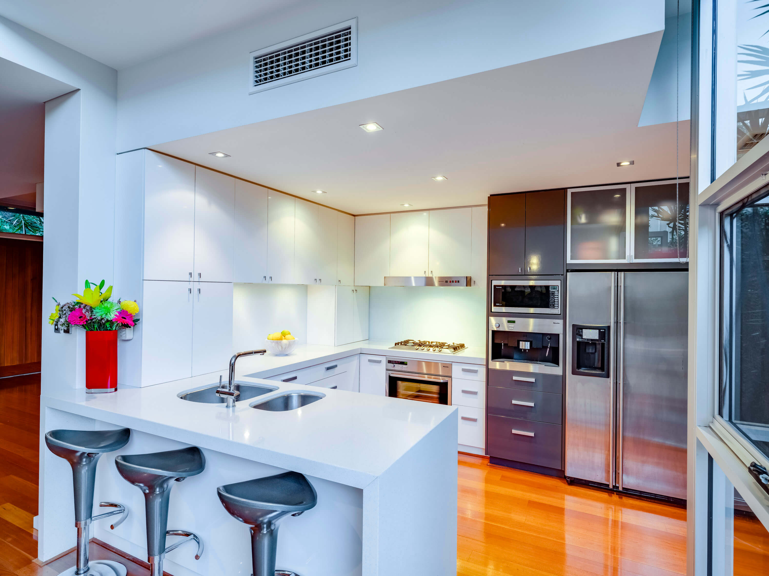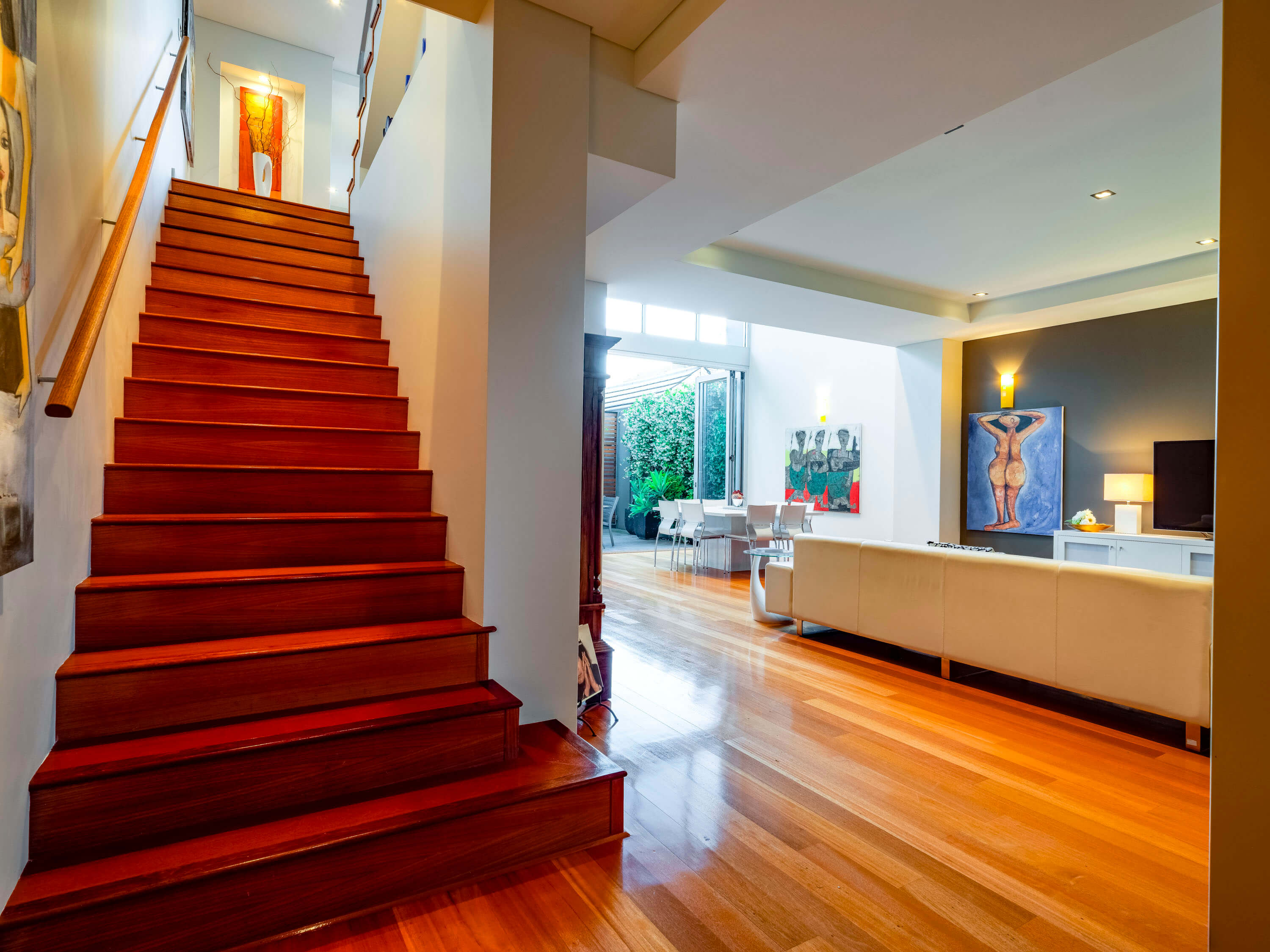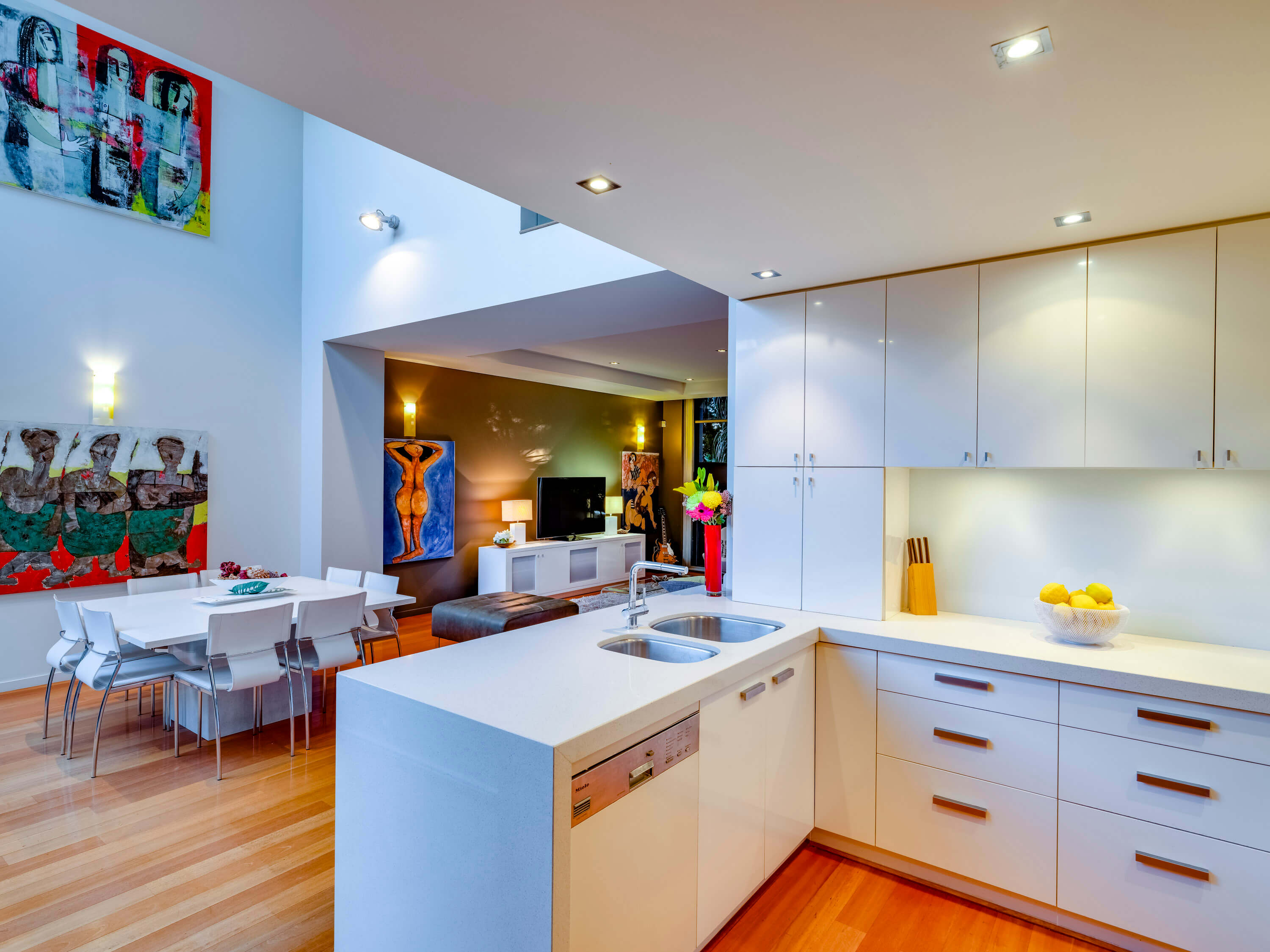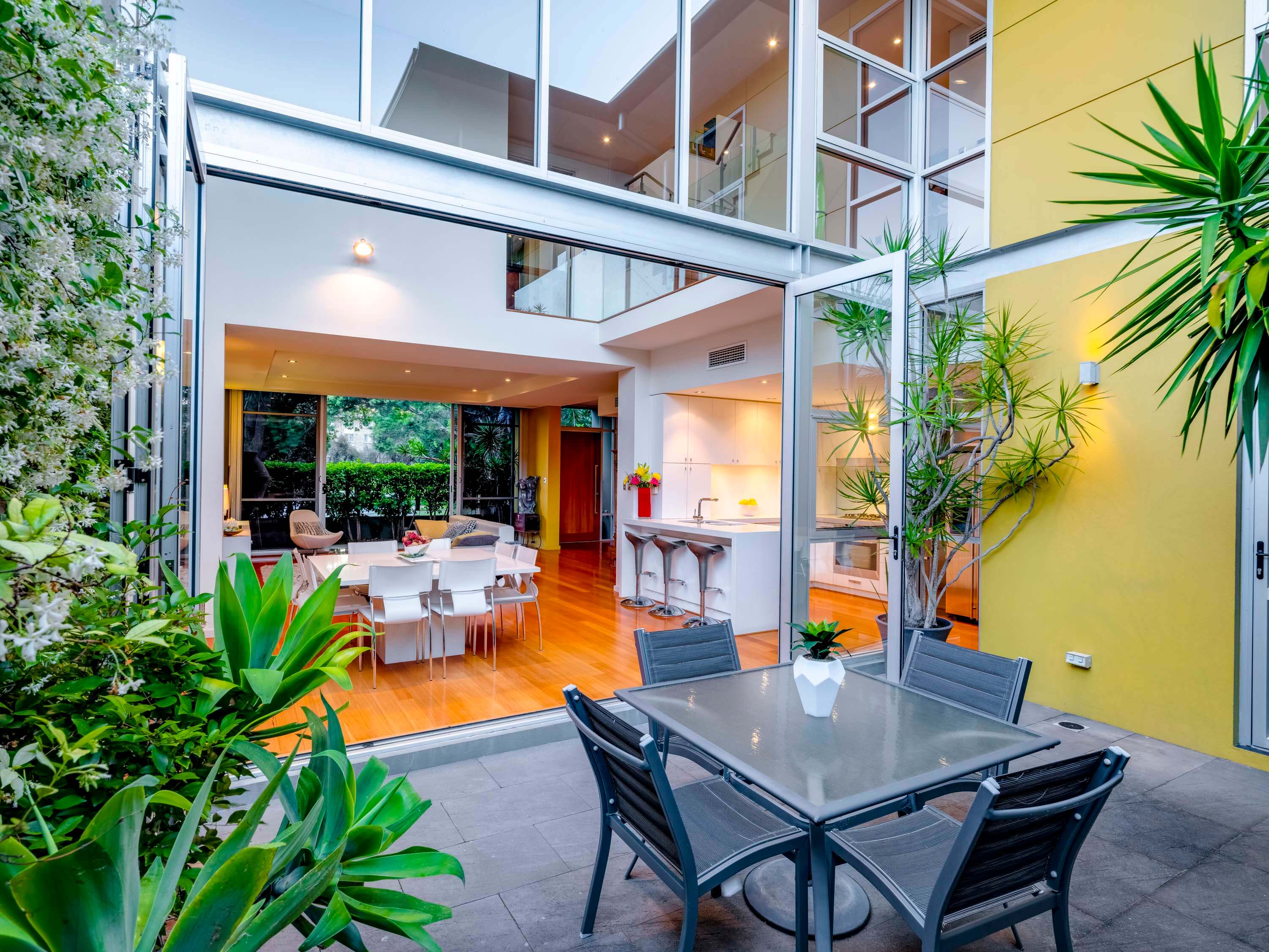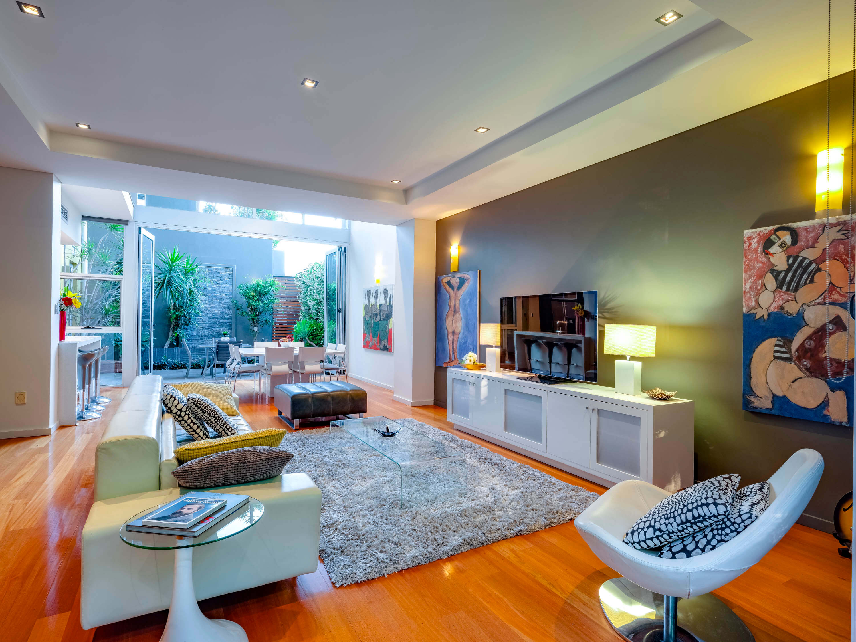This multi award-winning home was featured in many publications. Mario’s design for his own residence, this project is tucked between buildings on either side directly opposite a leafy park. Featuring a double height glazed wall to push light deep into the home, the space is bright and airy. All living areas and bedrooms capture views of the park beyond, artfully stacked over 3 levels to make the most of the building’s inner city location.