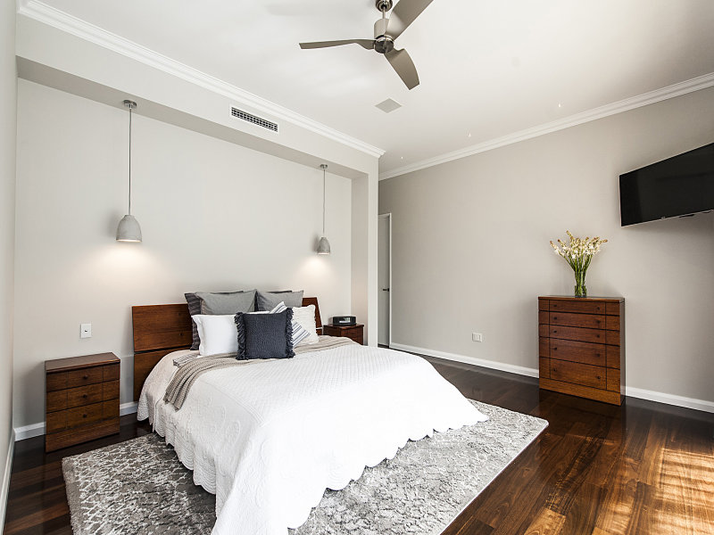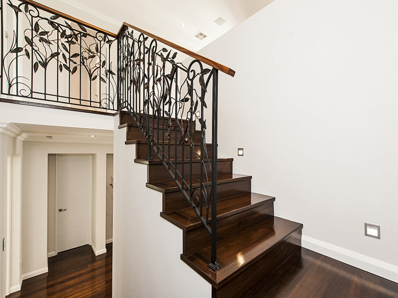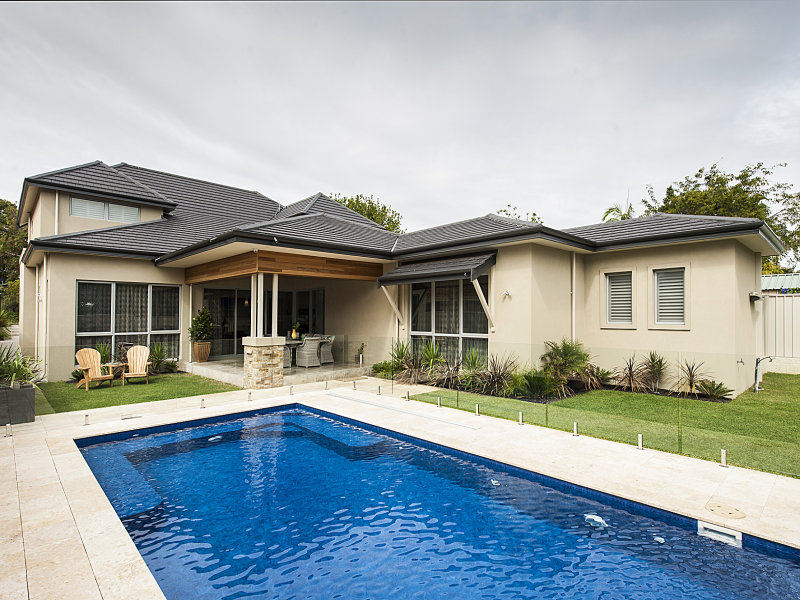 Driven by the clients preferred aesthetic, this home typifies the Hampton style with high pitched gables, feature stonework cladding and crisp white interiors. A standout element of this home is a decorative leaf-shaped metalwork on the balustrades, and rich material palette of timber and stone. This large family home provides room for everyone, with a generous pool area and backyard to boot.