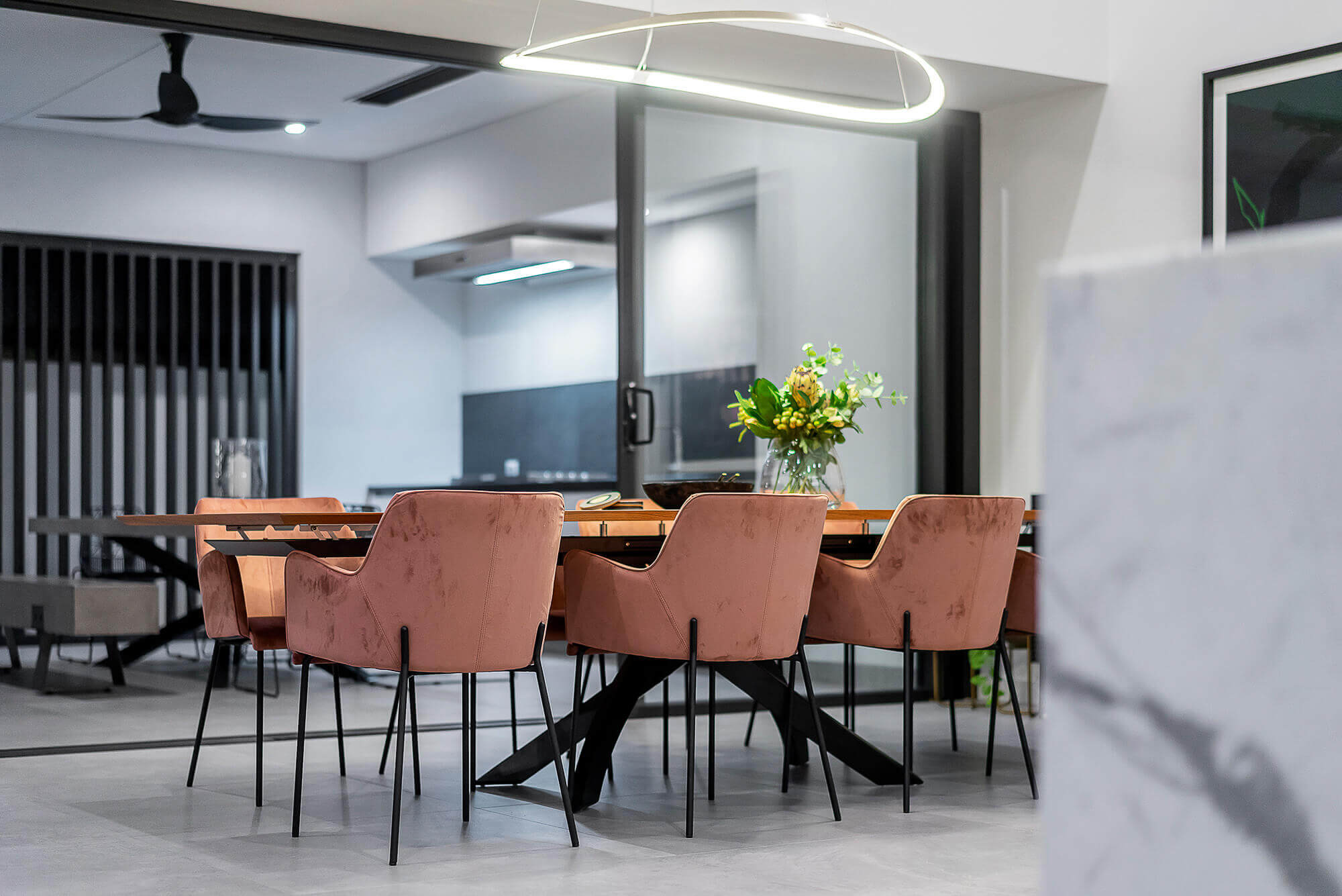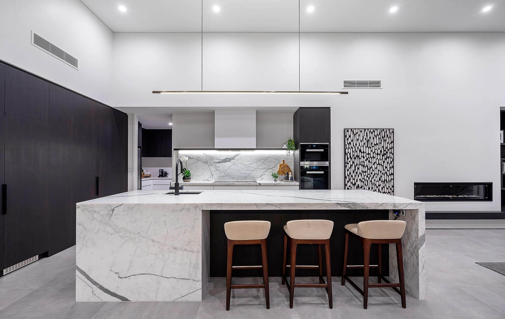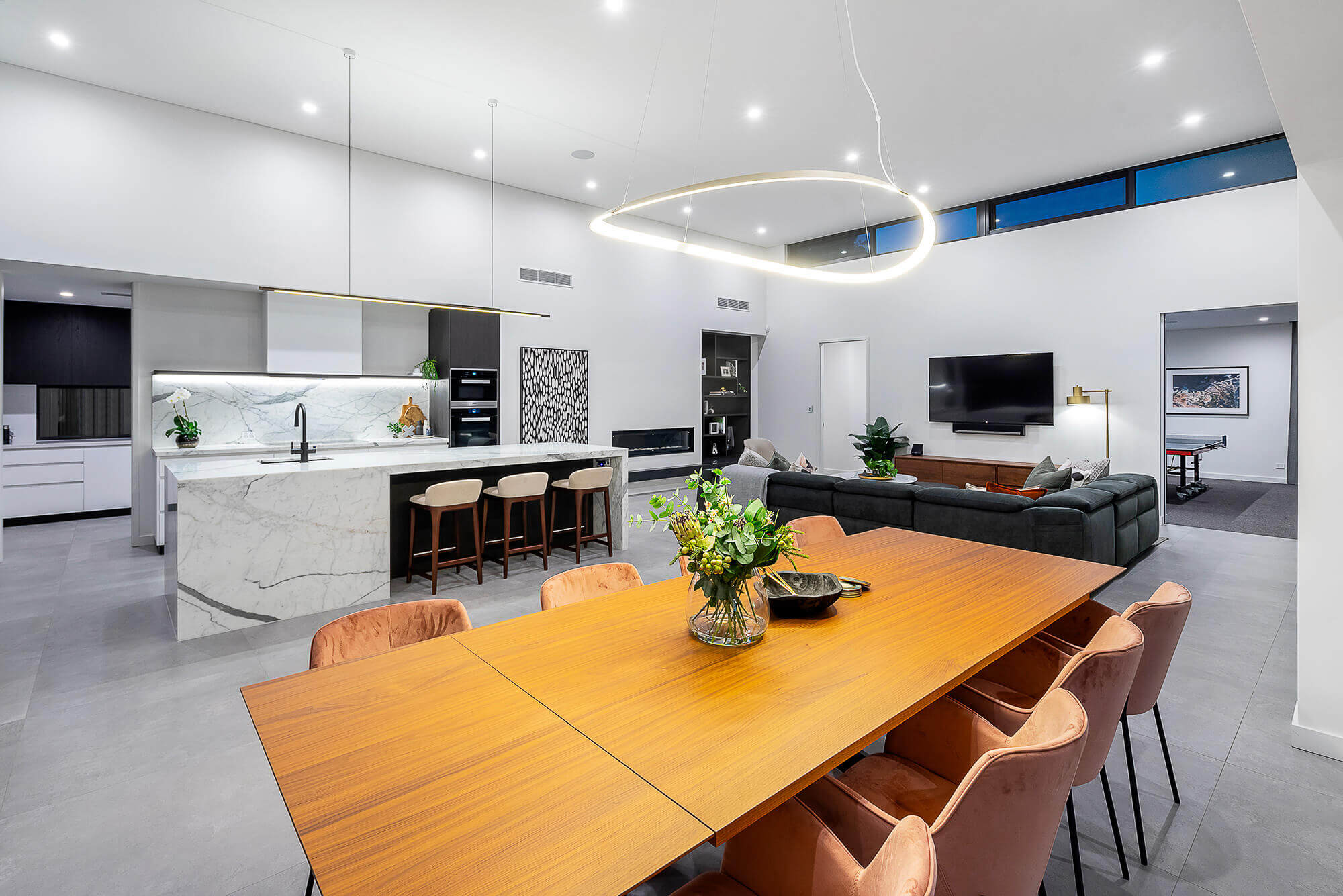 This Applecross residence effortlessly displays how vast a single-story home can feel. With its generous high ceilings, there is a sense of openness and space. As the natural light streams through the high windows, you can really feel the bright and voluminous intent of this design.