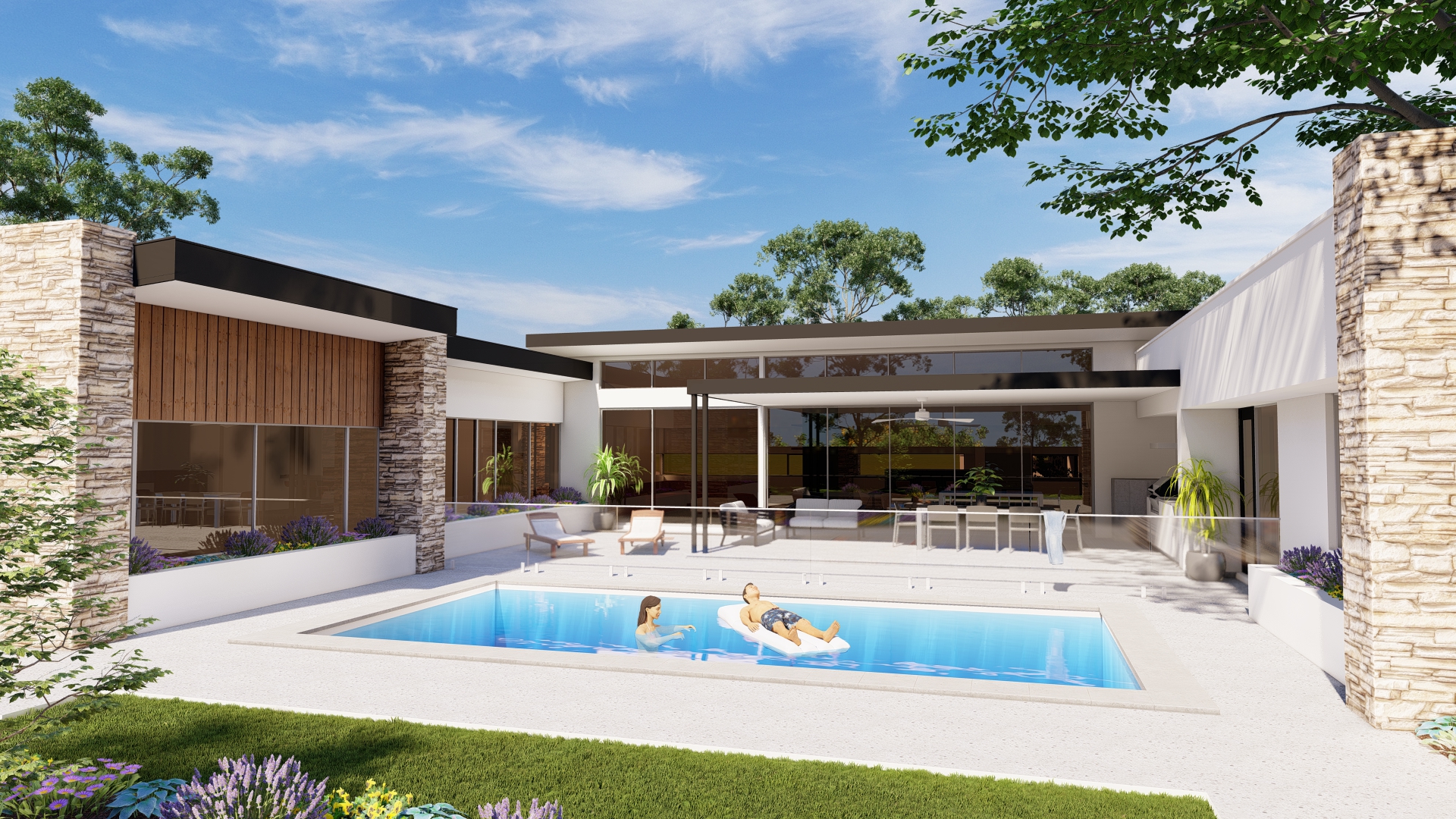 Sprawling 'U-shaped' design focused around a central garden area with outdoor entertaining space and pool. With large open-plan living areas, home theatre and 4 bedrooms, this home meets the owner's every need.