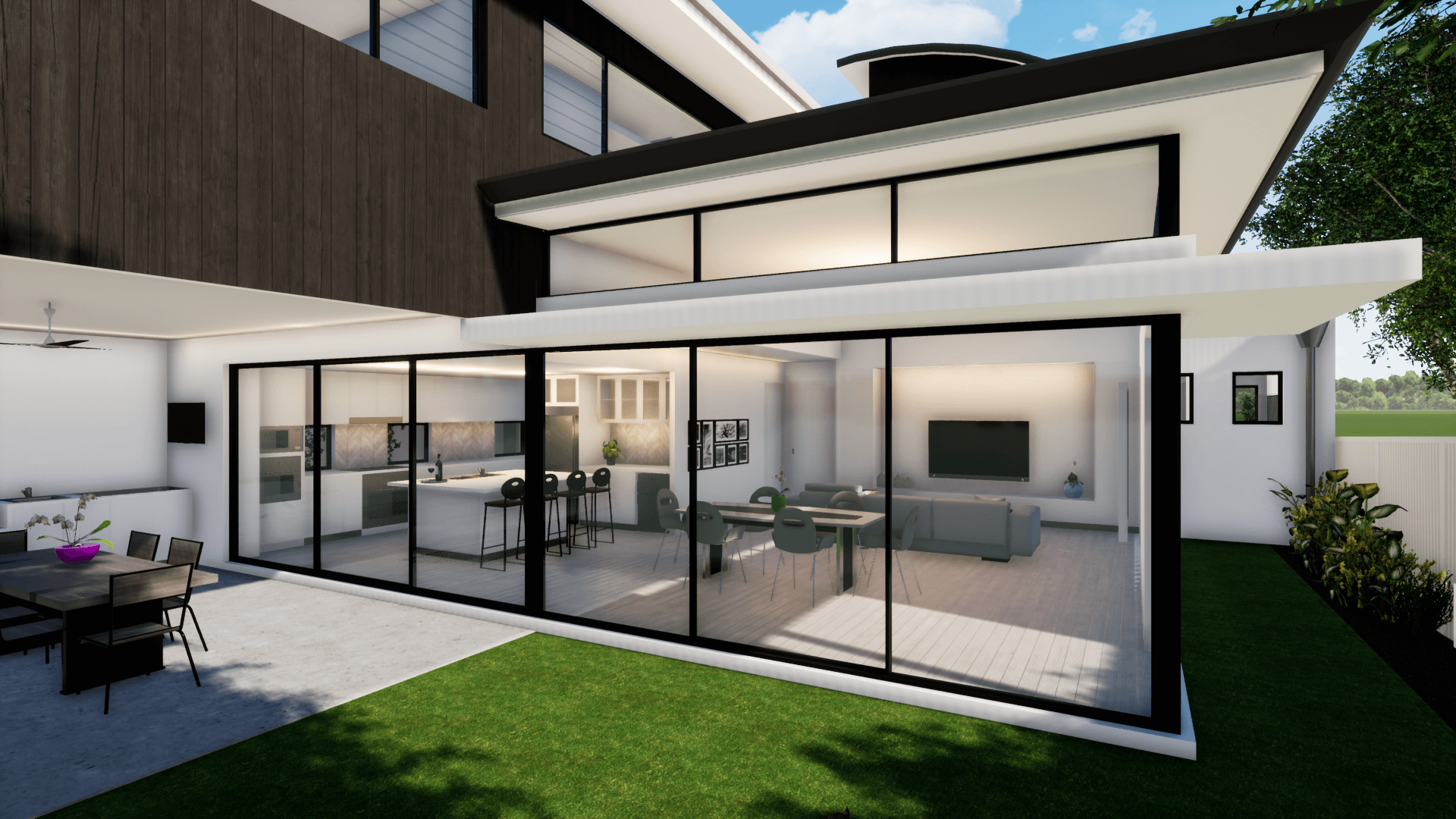 A clean, minimalistic façade presents to the street, but inside is a airy family home tailored for entertaining guests and accommodating visiting relatives. Many gathering spaces are provided, including a rooftop terrace with ocean views, lush backyard and alfresco, and a luxurious Boston themed cellar/bar.